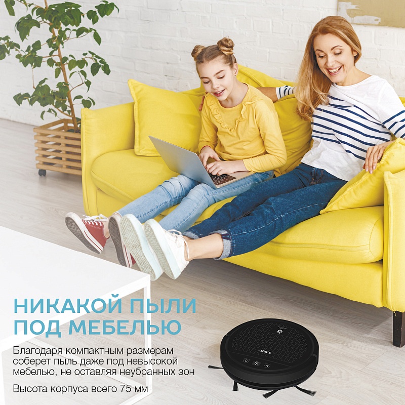 Маневренный и компактный робот-пылесос SC-VC80R12 – это незаменимый помощник для сбора грязи и пыли даже в труднодоступных местах.