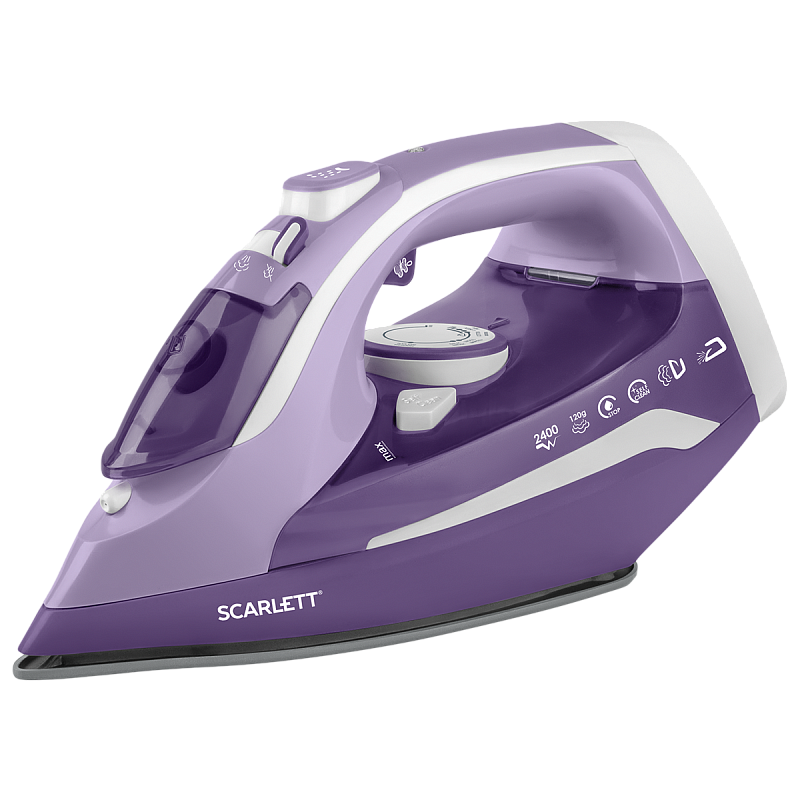 Модель Scarlett SC-SI30K38 в нежно-фиолетовом цвете представляет из себя утюг 2 в 1. Возможно проводное и беспроводное использование. Это добавляет мобильности и свободы движений. Встроенная подсветка в базе для нагрева радует глаз. Керамическая подошва обеспечивает невероятно легкое и быстрое скольжение по различным типам тканей. Работа осуществляется при мощности 2400 Вт. Прибор дополнен паровым ударом 120 г/мин, постоянным паром 40 г/мин и функцией разбрызгивания для большего увлажнения ткани. Объёма резервуара для воды (300 мл) достаточно, чтобы не доливать жидкость слишком часто, отвлекаясь от глажки. А кнопка подачи пара удобно расположена под ручкой. Функция анти-капля защитит бельё от нежелательных пятен; функции анти-накипь и самоочистки обеспечат долгий срок службы прибора