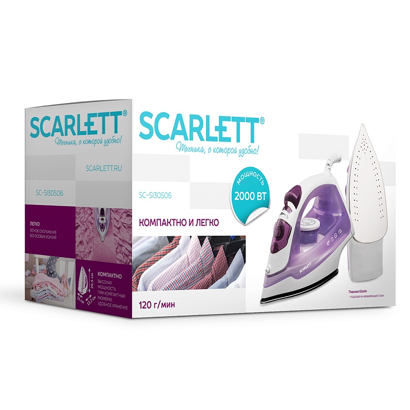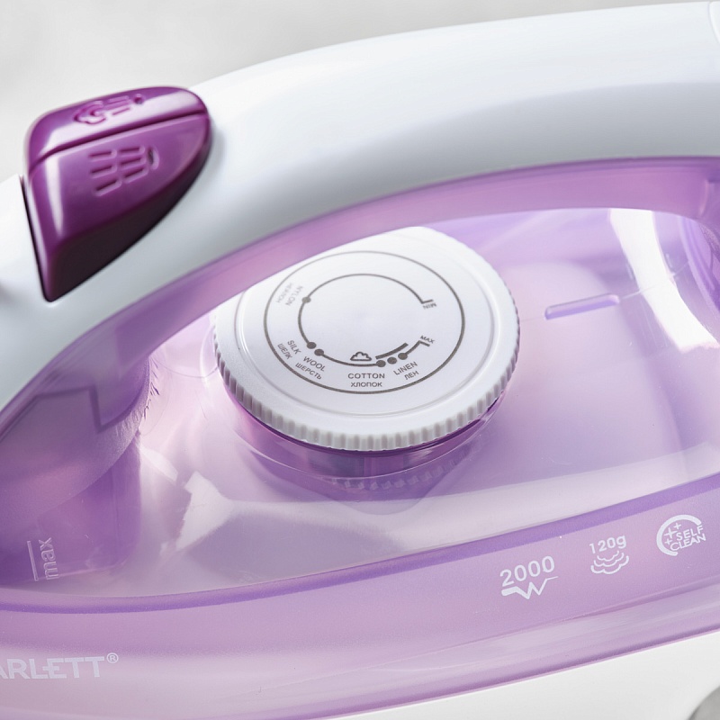 Утюг SCARLETT SC-SI30S06 в стильном лиловом цветовом решении отпаривает различные материалы не только в горизонтальном, но и в вертикальном положении! Этому способствует постоянный пар в 40 г/мин и паровой удар в 120 г/мин. Большее увлажнение тканей осуществляется посредством разбрызгивания мельчайших частиц воды, что обеспечивает равномерную влажность. Утюг также оснащён функцией сухой глажки, что позволит использовать прибор для любых тканей. Кроме того SC-SI30S06 компактен и удобен в путешествиях.