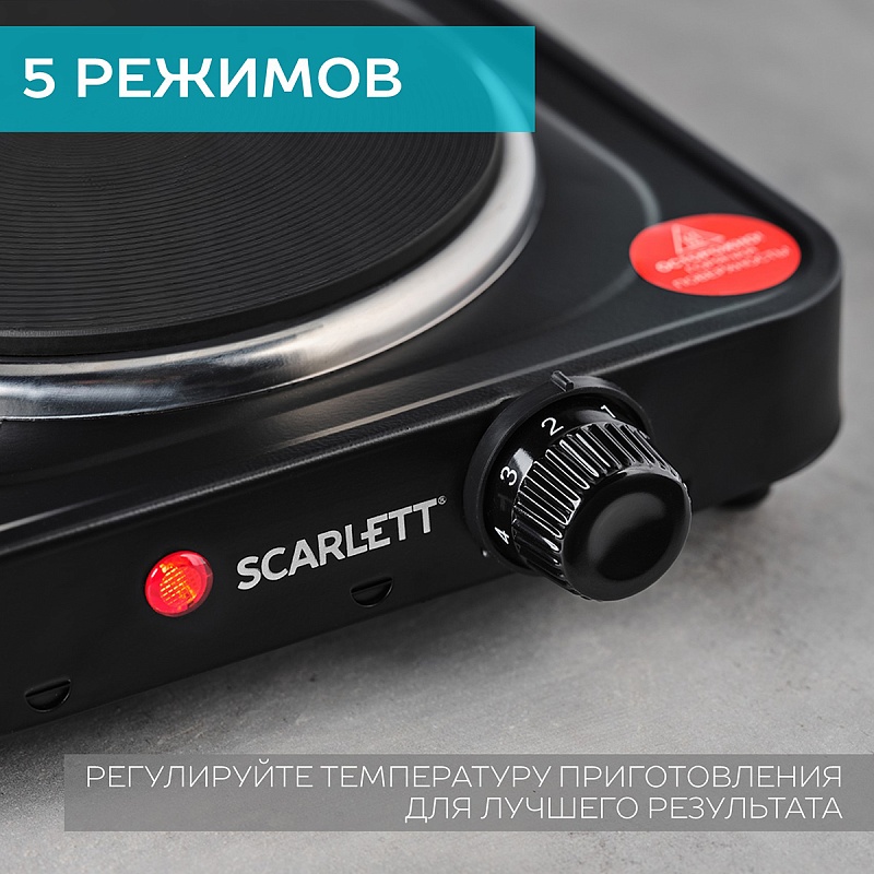 Электрическая плитка SC-HP700S11 - быстрый и практичный помощник на кухне. Быстрый нагрев обеспечивает оперативную работу прибора! SC-HP700S21 подходит для любого типа посуды: алюминий, чугун, металл, керамика, эмаль, антипригарное покрытие. 1 чугунная конфорка диаметром 15,5 см оснащена 5-ти ступенчатой плавной регулировкой температуры. Световая индикация работы упростит процесс эксплуатации электрической плитки.