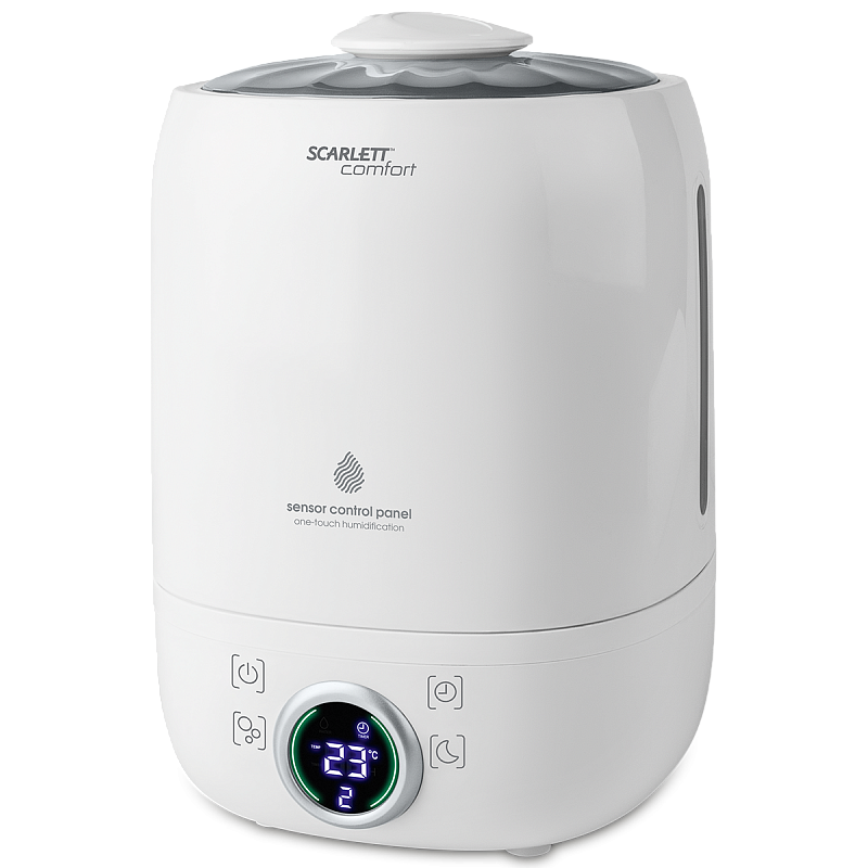Увлажнитель воздуха SC-AH986E07 многофункциональный прибор для создания оптимального микроклимата в вашей квартире. Эргономичный LED-дисплей отображает температуру и все режимы и функции прибора. Управлять увлажнителем можно не только на удоюной сенсорной панели, но и пультом дистанционного управления. Для создания приятной и ароматной атмосферы, достаточно лишь добавить несколько капель аромамасла в капсулу, которая находится на поддоне прибора. Функция таймера поможет настроить время работы увлажнителя. Большой контейнер для воды вмещает в себя 4.6 литра воды, поэтому вам не придется часто подливать воду в увлажнитель, экономя ваше личное время. При отсутствии воды в увлажнителе, прибор отображает на дисплее иконку низкого уровня воды и автоматически отключается для сохранения длительного срока службы прибора