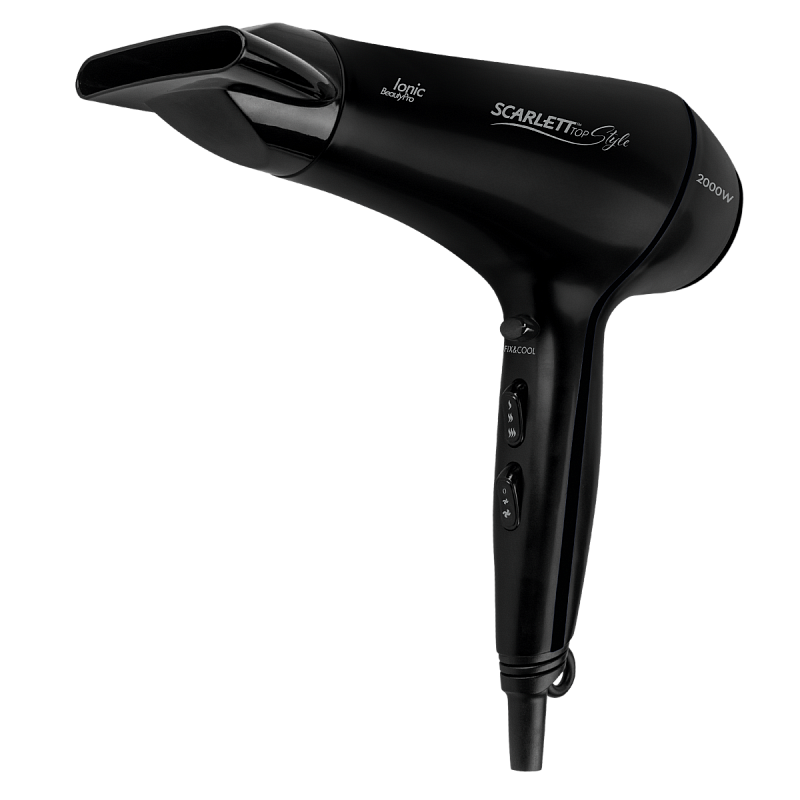 Фен Scarlett Top Style SC - HD70I22 оснащён специальной технологией Advanced tourmaline, что обеспечивает защиту волос от обезвоживания и пересушивания при сушке. Благодаря высокой мощности прибора результат достигается в кратчайшие сроки - отличное решение для тех, кто экономит время сборов по утрам. 2 режима мощности потока воздуха, 3 режима температуры потока воздуха для любого типа волос и насадка-сопло позволят найти свой подход к любым структуре и типу волос.
