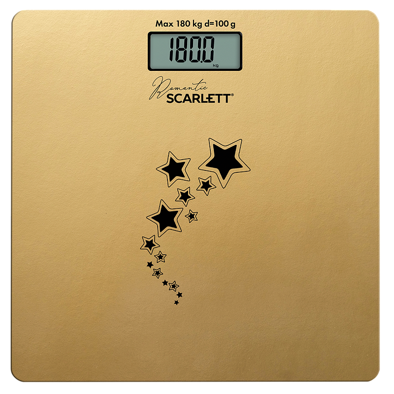 Напольные весы SC-BS33E014 - это простой и удобный способ контролировать свой вес! Благодаря высокочувствительным датчикам погрешность составит не более одной цены деления: 100 г. Максимальный вес: 180 кг. Ультратонкий дизайн обеспечит компактное хранение. Материал платформы - высокопрочное закаленное стекло. Автоматическое включение и выключение позаботятся об экономом расходе заряда батареи. Индикатор перегрузки и индикатор батарейки обеспечат комфортную эксплуатацию. Большой жидкокристаллический дисплей 74 x 30 мм делает эксплуатацию весов комфортнее. Прорезиненные ножки придают дополнительной устойчивости и предотвращают скольжение. А золотистый цвет - отличное дополнение к вашему интерьеру